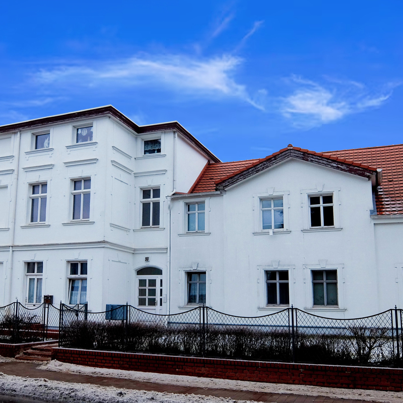 Das Gesamtensemble umfasst insgesamt 8 Wohneinheiten, verteilt auf vier Gebäude, die sich um einen Innenhof gruppieren. Zum Verkauf stehen ausschließlich die beiden straßenseitig gelegenen Gebäude. Die beiden hofseitigen Anbauten verbleiben im Eigentum des Verkäufers. Das angebotene Mehrfamilienhaus verfügt über insgesamt 6 Wohneinheiten mit Wohnflächen zwischen ca. 30 m² und ca. 84 m². Die Gesamtwohnfläche beträgt ca. 373,85 m². Eine Wohneinheit im 1. Obergeschoss mit ca. 84 m² steht derzeit leer und ist vollständig sanierungsbedürftig. Die übrigen Wohnungen sind seit mehreren Jahren zuverlässig vermietet. Das Gebäude wurde im Jahr 1900 im typischen Stil der Bäderarchitektur errichtet. Im Jahr 1995 erfolgte ein Umbau sowie eine Teilsanierung.